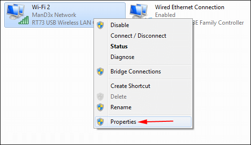 • 现在,您将获得网络连接窗口。右键单击活动无线设备,然后选择其属性。