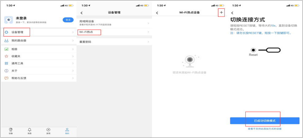 1.轻按Reset键切换到热点模式