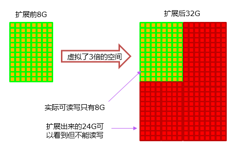 1)扩容卡:是指用非法手段让容量小的存储卡在电脑、摄像机上显示出的容量变大,比如一张本身只有8GB存储空间的卡,被标注成32GB或以上的卡。被虚拟出的空间实际是无法存储录像的。