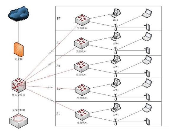 当开始没有布置网线的话,那么我们可以考虑通过无线桥接来实施,比如一个6层楼的酒店,每一层都装有一个交换机,然后三楼一个中心交换机,其他5楼的交换机分别从这三层交换机接根线,如果要实现无线网络全覆盖的话,我们可以先在每一层的交换机那里安装一个无线路由器,然后每一层的其他地方如果没有WIFI信号的话可以往两边拓展安装无线路由器,只要能接电就可以,一般在每层楼都会有应急灯,可以考虑在应急灯的插座那里安装,然后再通过无线桥接连接已经连接了线的WIFI。