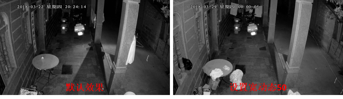 调整角度或者设置区域补偿后,适当提高宽动态可以加强暗处的细节,监控的夜视效果更佳。