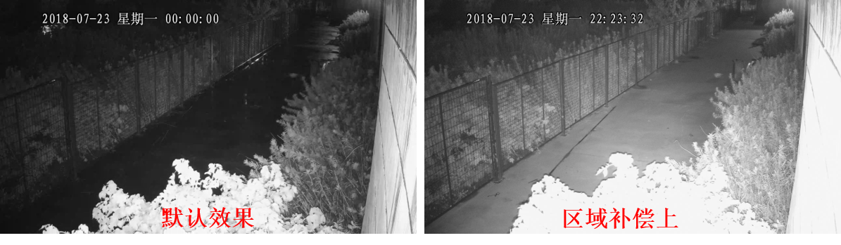 可以通过设置摄像机的区域补偿,提高摄像机的曝光时间,这样虽然墙体或者反光障碍物可能会更亮,但是有效的监控区域就可以看得更清楚了。