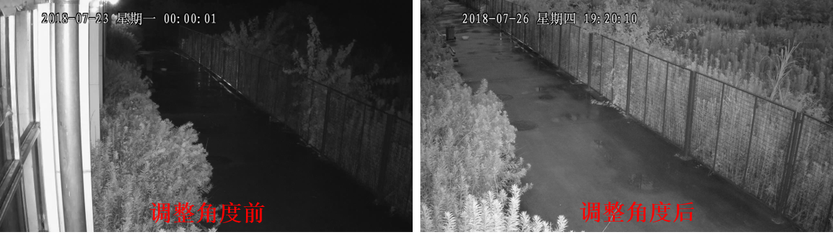 摄像机在贴墙安装的时候,如果角度过于偏向墙体,就会导致墙体反射回来的红外光过强,墙体就过曝了。如果墙体过曝,摄像机会通过降低快门的曝光时间来保持画面的整体平均亮度,这么一来画面的另一边就会过暗。