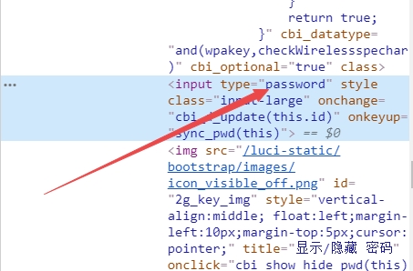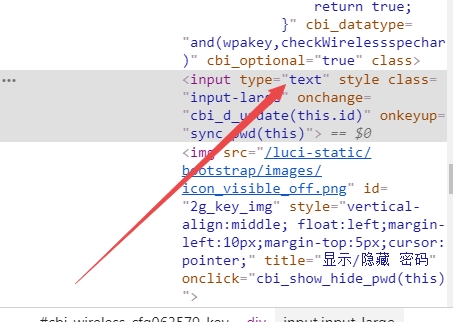 type=”password”是表示这行代码是密码框。我们需要把这个password改成text即可