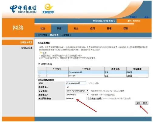 2;找到无线网络密钥,然后输入自己要设置密码,最后确定