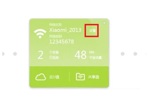3;电脑桌面上打开随身wifi悬浮窗界面,点击“设置”将wifi密码修改成自己想要的wifi密码。
