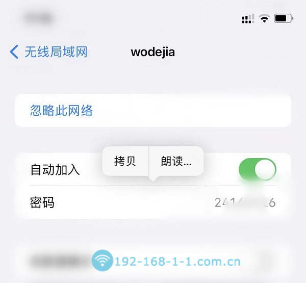 5;通过面容验证后,即可显示您的 WiFi 密码,之后您可以点击拷贝,发送给任何人共享它。