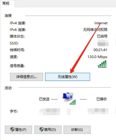 5;在出现的窗口中央,单击“无线属性”按钮。