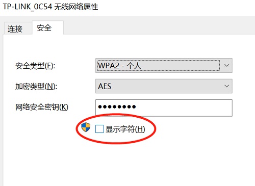 6;在下一个窗口中,单击“安全”选项卡 ,然后选中“显示字符”旁边的框。