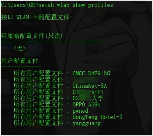 其中用户配置文件:是所有连接过的wifi网络名称列表