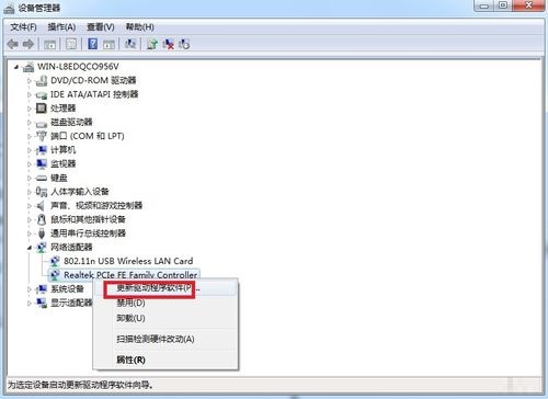 在有问号(感叹号)的程序上面单击右键选择“更新驱动程序软件”,如图所示,一步步重新安装网卡驱动程序,或者用驱动精灵也能自动安装驱动程序,安装好后,“本地连接”就回出现的。
