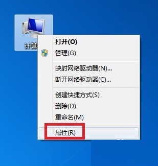 在桌面“计算机”图标上面单击右键选择“属性”,如图所示。
