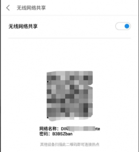 第四步:点击【无线网络共享】后会弹出一个二维码,二维码下面有你手机共享出去的热点名称和密码,我们只需叫别人去连接这个就可以了,或者是叫别人直接扫描这个二维码也可以;