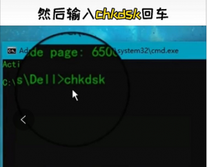 第二步:我们在命令窗口输入chkdsk回车;
