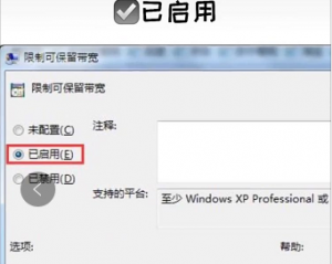 第五步:点击启用,然后把宽带限制改成百分之0,点击应用,这样你的网速就解除了校园网络限速拉;