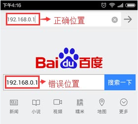 (3)路由器IP地址是否输入正确,192.168.0.1我们在网址输入栏中一定要全是数字,可不能把数字0写成字母o,虽然这连个相差不大,但是输入进去效果是不一样的,无需加http//,直接输入就好了;