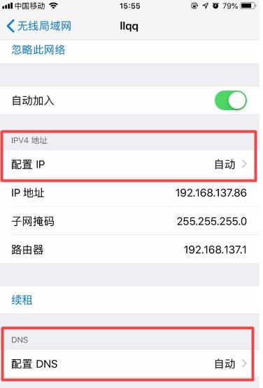 进入电脑或手机中的网络设置,确保手机已正确连接到 WiFi,并且没有任何网络设置问题。尝试使用另外一台手机连接无线网络试试能不能上网。进入设备的网络设置,将配置IP和DNS都设置为自动。