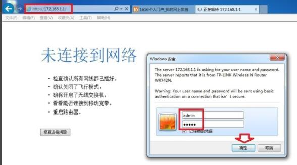 3、这时候,再使用192.168.1.1地址是无法进入路由器的界面,只有按路由器的重置键。重新设置路由器。