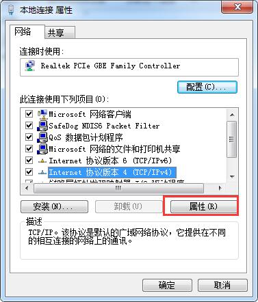 4. 现在,您处于此特定连接的配置窗口中。我们对第四版IPv4的设置感兴趣。只需选择此项并返回属性即可。
