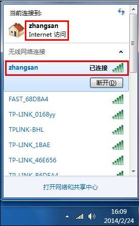 注意:信号名称为路由器中设置好的SSID。如果不确定,可将电脑与路由器通过有线连接,通过浏览器登录管理界面。点击无线设置>>基本设置查看SSID;点击无线设置>>无线安全设置查看无线密码。