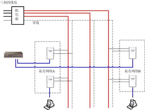 可以。PLC信号在跨越三相电的时候信号会有一定程度的衰减,可能存在不同相之间同一私有网络PLC不能通信的情况。如果PLC要跨相使用,建议同一私有网络的PLC最好连在同一相电路上,推荐使用下面的拓扑结构: