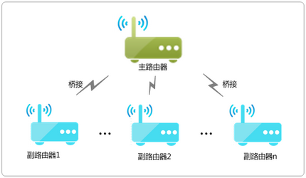 星型:多台无线路由器桥接到一台主路由器,副路由器的数量取决于主路由器的无线带机量。