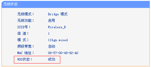如果WDS状态显示成功,如下图所示: