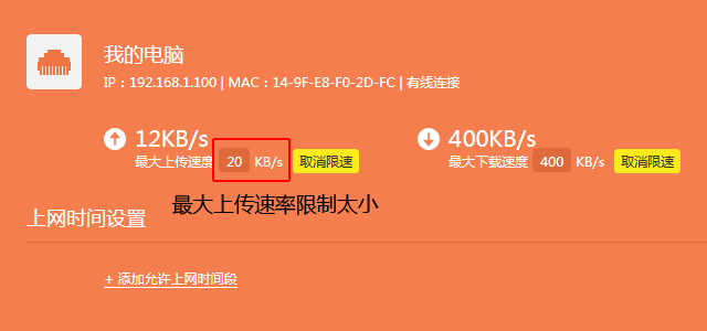 如果路由器设置了带宽控制,而带宽分配并不合理,也会导致上传速度慢,如下图所示: