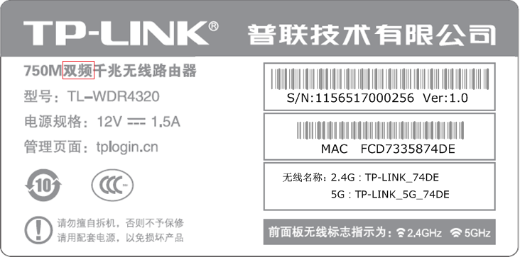解决方法:请查看无线路由器的产品说明书或咨询设备厂商,确认无线路由器是否支持5G频段。如使用TP-LINK无线路由器,查看设备底板标贴上标明“双频”字样,即表明此无线路由器支持5G频段。