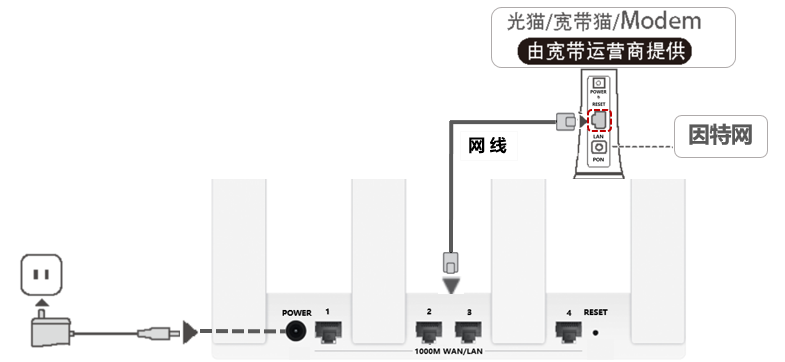 • 排查光猫网口:将网线更换到光猫其他的网口尝试。部分光猫有多个网口,其中有的网口有其他功能,比如IPTV等,如果网线连接错网口,可能导致不识别。可以尝试将网线逐一连接光猫的各个网口尝试。