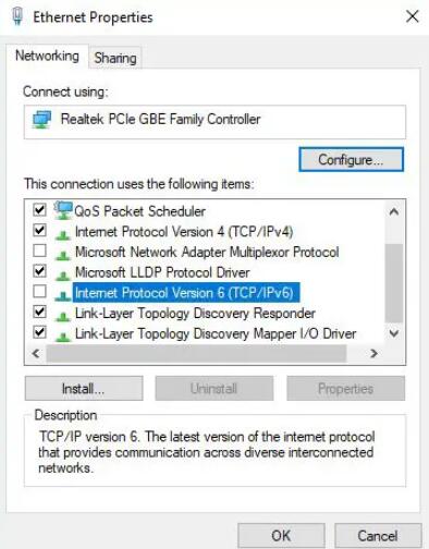• 查找“Internet 协议版本 6 (TCP/IP)”选项并取消选中它。
