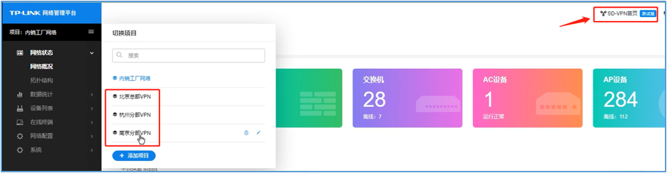 确认已经将所有站点的设备添加到同一个TP-LINK ID下,在页面右上角点击SD-VPN首