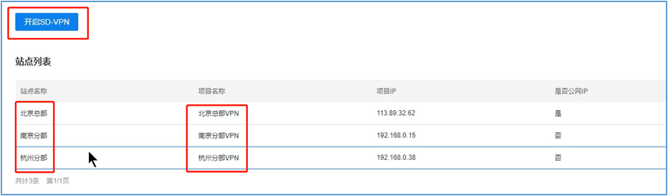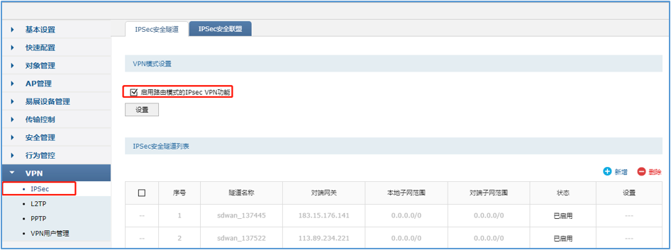 注意:设备绑定上商云之后需要确保各个站点设备端启用了路由模式的IPsec VPN功能 (此功能默认是开启的)。