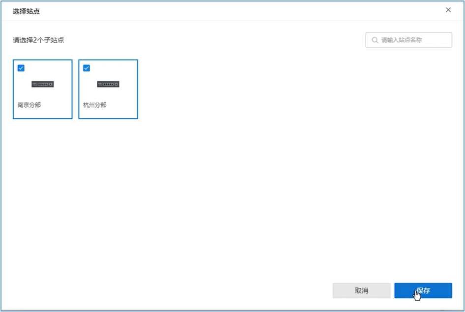 点击确定配置下发完成之后,即可实现站点之间的部分网段不能互通,部分站点可以互通。