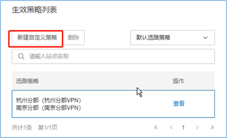 在商云平台SD-VPN项目中点击选路策略,新增自定义选路策略: