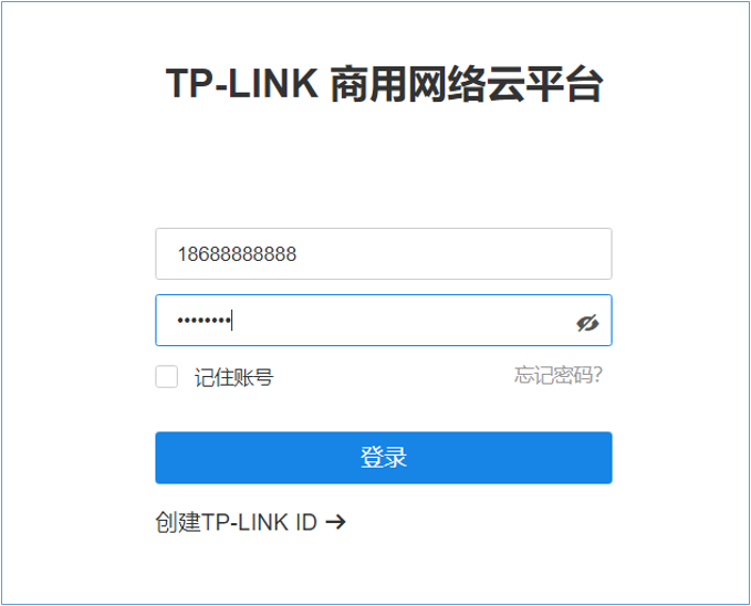 进入TP-LINK商用网络云平台,输入TP-LINK ID登录: