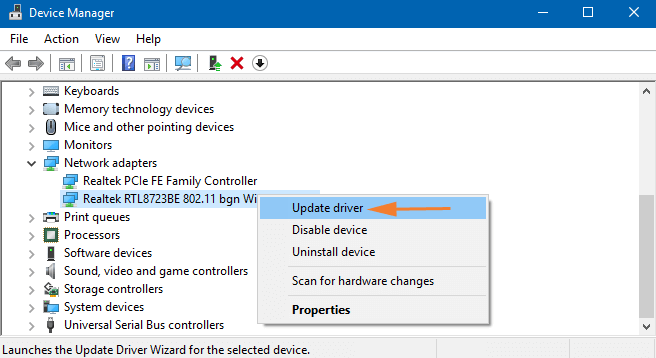 步骤4:确保无线适配器后,右键单击它。很快,列表中会出现几个选项,单击“更新驱动程序”.