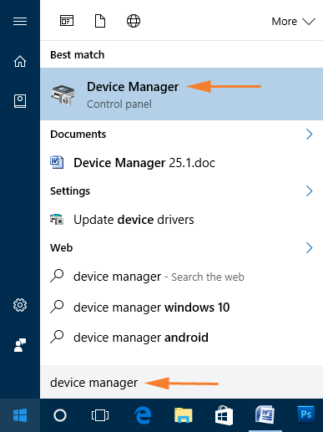 步骤1:单击“开始”,写入device manager.很快,Cortana将显示相同的结果,单击它。