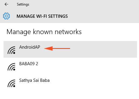• 在下一页中,向下移动到标题为“管理已知网络”下的最后一部分,然后搜索已重置密码的WiFi的名称。