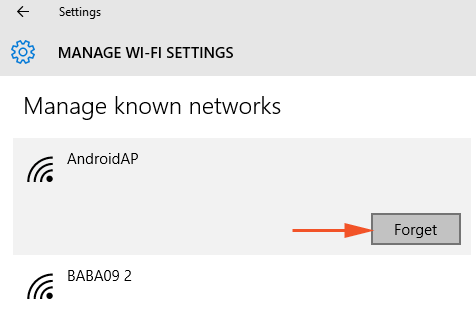 • 单击或点击该“网络名称”(在这里我重置了AndroidAP的密码),然后单击“忘记”按钮。