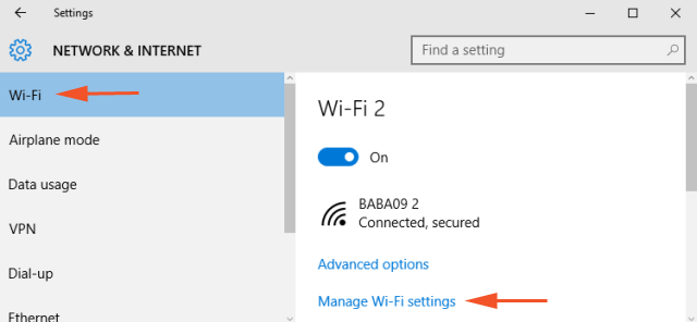 • 留在左栏的“WiFi”部分,然后单击另一侧的“管理Wifi设置”链接。