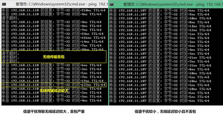 当距离较近且无隔墙的情况下,若仍然有跳秒丢录像的情况,则考虑是否存在无线干扰,可以通过电脑有线连接路由器ping此摄像头查看延迟情况,当信道干扰较为严重时,则会出现丢包和延迟上百上千毫秒的情况。