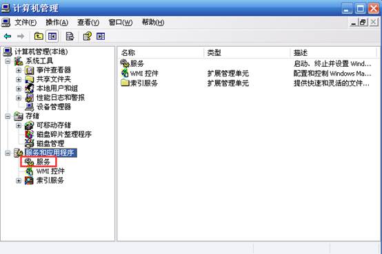 2、展开“服务和应用程序”列表,点击“服务”。