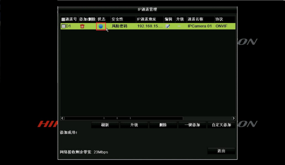 使用海康NVR添加TP-LINK IPC后,显示状态正常但是预览画面黑屏。如下图: