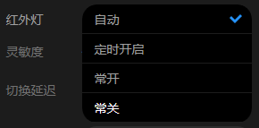 登录到锁定为夜晚模式的IPC的WEB界面,点击设置>摄像头>显示>图像,检查红外灯的设置是否正确。红外灯建议设置为自动。
