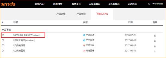 1、登录腾达官网://www.tenda.com.cn/product/support/U2.html