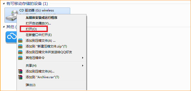 方法二:若仍无法自动弹出运行程序,可在我的电脑/计算机/手动打开CD驱动器Wireless