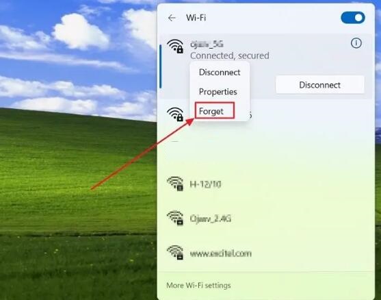 • 右键单击它,然后单击“忘记”.