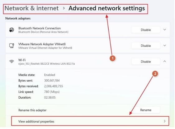 • 转到网络和互联网> Advanced Network 设置以查看所有网络适配器。展开您用于查看的那个