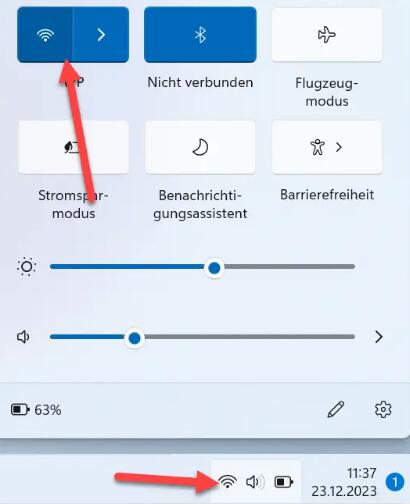 2. 在打开的小菜单中,激活或停用WLAN。您还可以在此处访问其他 Wi-Fi 源。